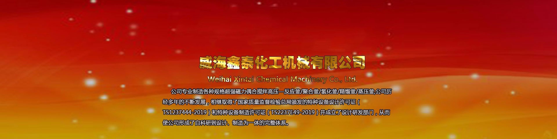 威海鑫泰化工機(jī)械有限公司位于山東威海,本公司專業(yè)制造銷售各種規(guī)格高壓反應(yīng)釜、磁力反應(yīng)釜、不銹鋼高壓釜、不銹鋼反應(yīng)釜、強(qiáng)磁力偶合攪拌反應(yīng)釜及與其配套的壓力罐、冷凝器、塔器等,其結(jié)構(gòu)形式、高中低壓、加熱方式、攪拌形式、轉(zhuǎn)速變化均可按標(biāo)準(zhǔn)或按用戶工藝要求進(jìn)行選配定制,廠家直銷,產(chǎn)品價(jià)格低,型號(hào)全。